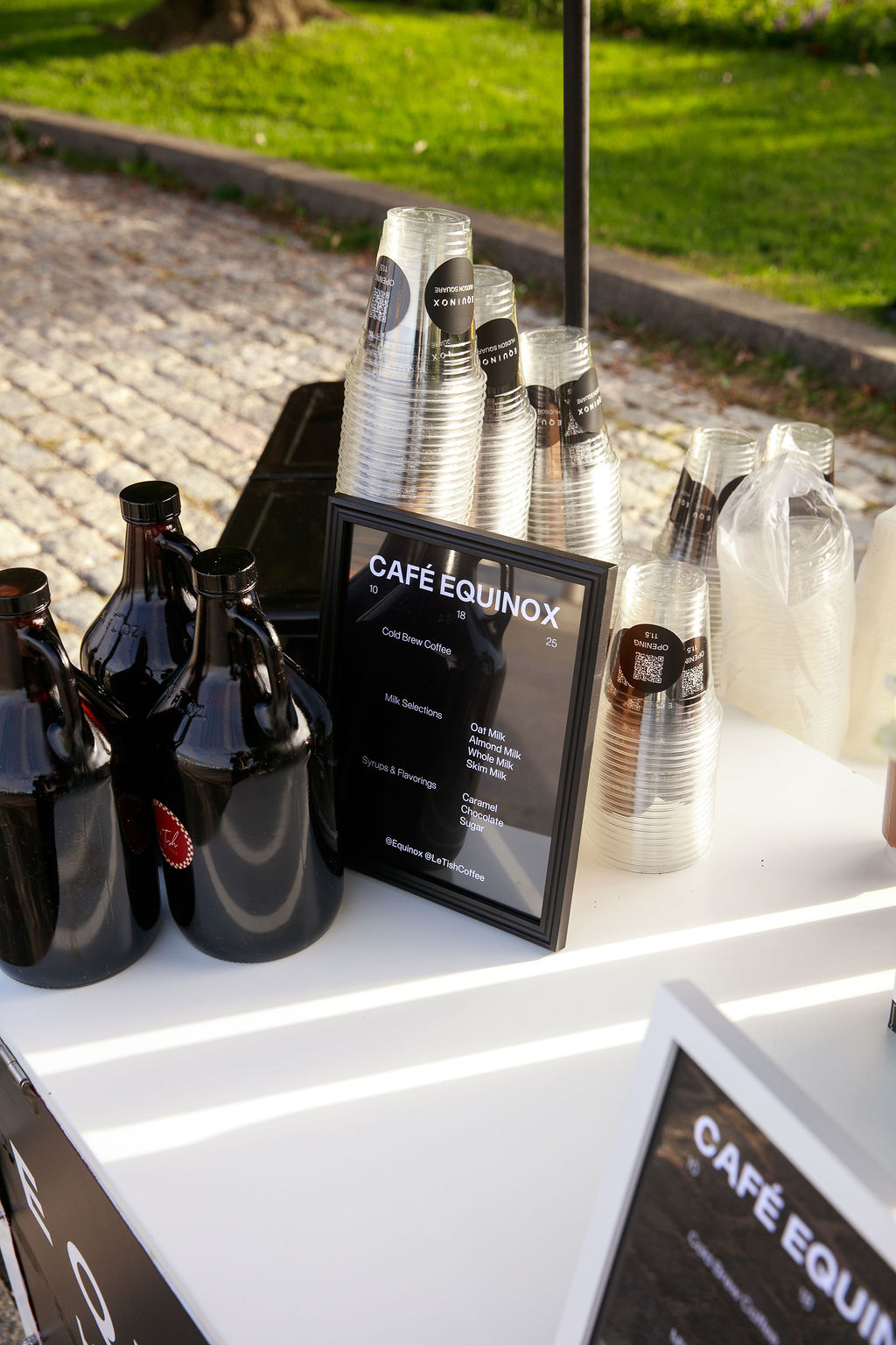 Make your coffee pop-up unique and brand-centered with personalized drinkwear, a full cart wrap, event menus, coffee sleeves, napkins, and more.
